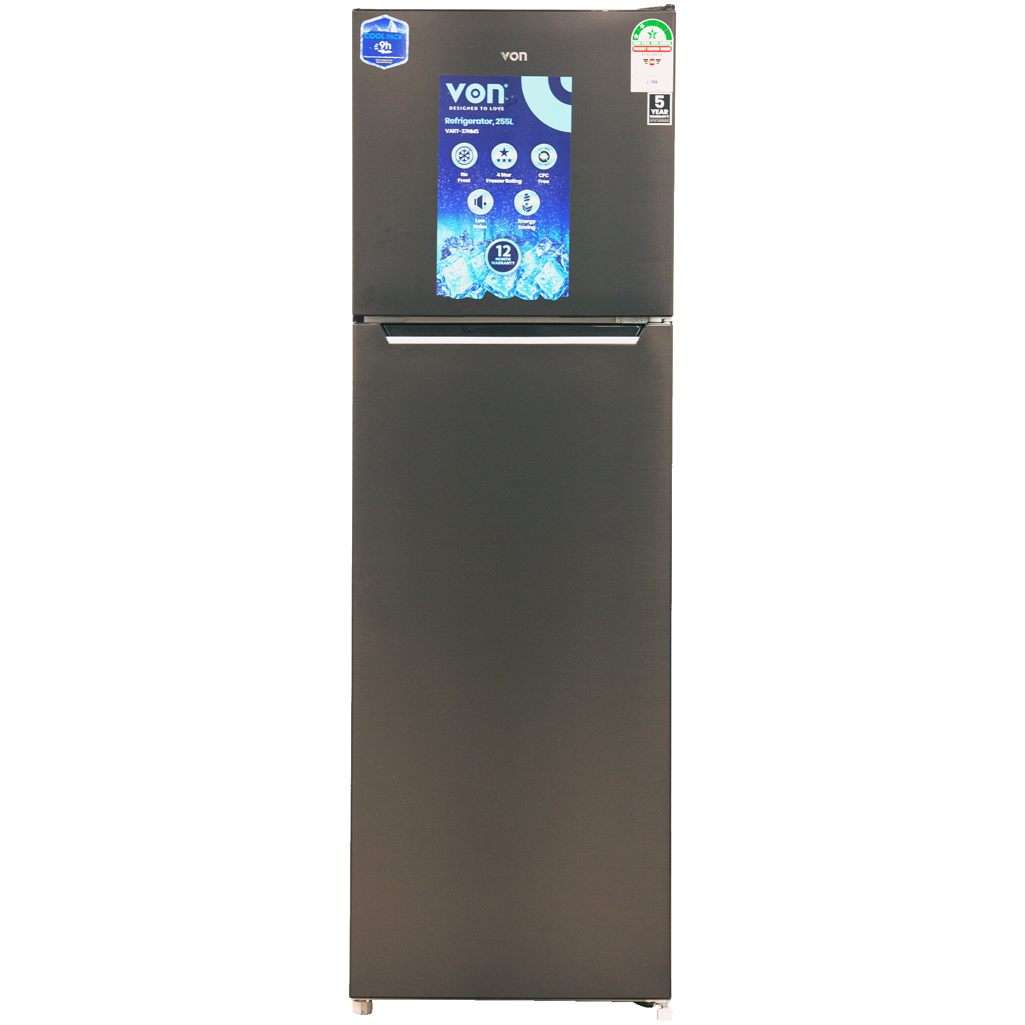 Von 255L Double Door Fridge Silver VART-37NMS